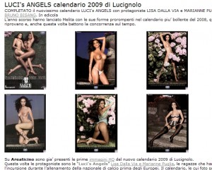 - Proviamo a cercare su Internet dei Calendari Online 2009, una ricerca con Google ci fa arrivare su www.areaticino.com, più esattamente nella sezione “LUCI’s ANGELS calendario 2009 di Lucignolo”
