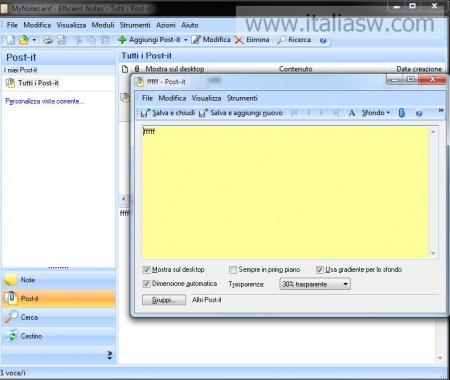 Questo software non è valido solo per l’organizzazione delle note, potete utilizzarlo anche come “Post-It Digitale” sostituendo quello di Windows Vista, Windows 7 e Windows 8 che non offre funzioni extra come la ricerca full-text e l’organizzazione delle note. Unica “nota stonata” è l’assenza di una funzione per avvisarci della scadenza di un post-it ..