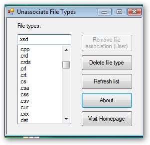 Windows Vista è differente da Windows XP per la gestione delle estensioni dei files, oltre ad andare a modificarle da Pannello di Controllo – Programmi – Apri un tipo di file sempre con lo stesso programma, la strada è a vicolo cieco. Una valida soluzione per la cancellazione di un’estensione da Windows Vista è l’utilizzo dell’utility Unassociate File Types, non necessita di installazione, è gratuita e rimuove efficacemente un’estensione globalmente dal nostro sistema operativo.