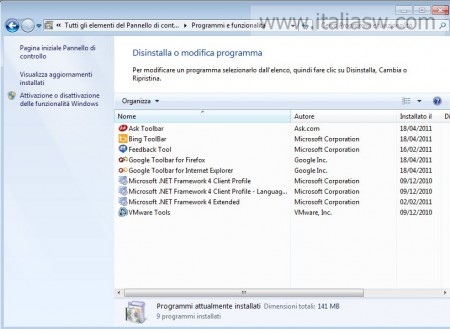Abbiamo testato il software su un’installazione di Windows 7 Clean (senza software aggiuntivi) arricchita da Bing Toolbar, Ask Toolbar e Google Toolbar.