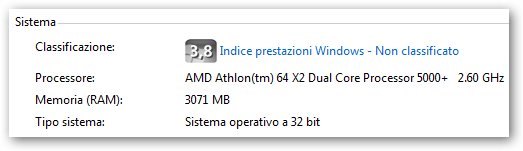 - Utilizziamo una versione a 32 Bit di Windows Vista e, supponendo di avere una Mobo con 4 slot per la Ram liberi, inseriamo due banchi da 1 Giga e due da 512 MB per un totale di 3 Giga di Ram.