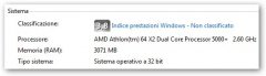 Nelle versioni a 32 BIT di Windows Vista con 4 GB di Ram (4 banchi da 1 Giga di Ram), nonostante il Bios riporti fedelmente la quantità di memoria installata, il Box delle Informazioni di Sistema riporta una quantità di Ram pari solitamente a 3.5 GB